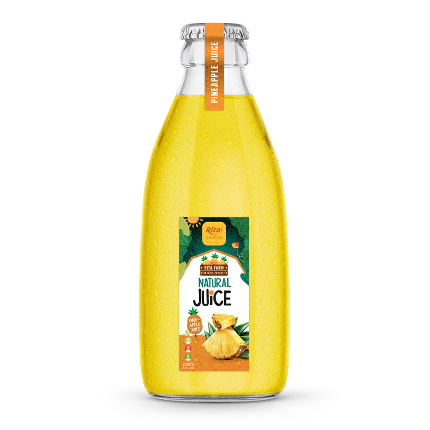 بطری شیشه ای 250 میلی لیتری آب آناناس خوشمزه